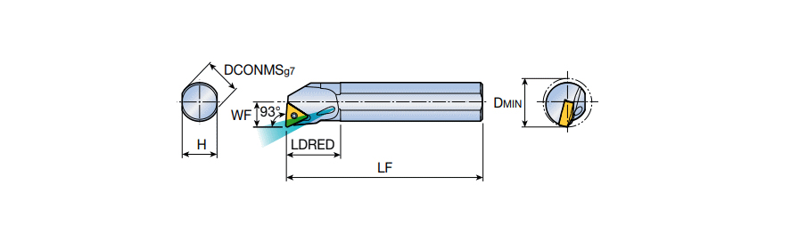 Screw type RHINOTURN boring bars with coolant & 93° approach angle for TN.. 1304 inserts