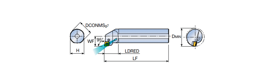 Hook lever RHINOTURN boring bars for CN.. 0904 inserts with coolant and 95° approach angle