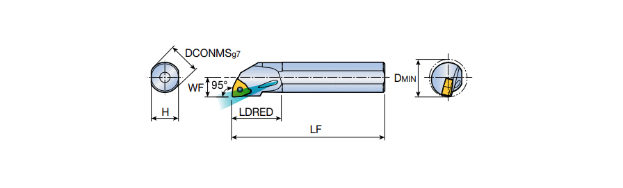 Screw type RHINOMTURN boring bars for mini size WNMX 0403 inserts with internal coolant hole and 95° approach angle