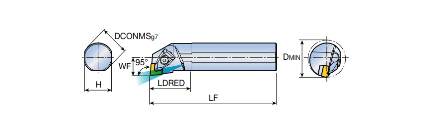 T-holder RHINOTURN boring bars for CN.. 0904 inserts with coolant and 95° approach angle