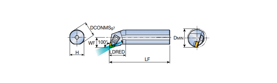 T-holder RHINOXTURN boring bars with internal coolant, 100° approach angle & 70° corner angle XNMG inserts