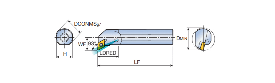 Screw type boring bars for 55° negative Rhombic inserts with coolant and 93° approach angle