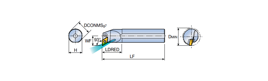 Hook lever RHINOTURN boring bars for DN.. 1305 inserts with coolant and 93° approach angle