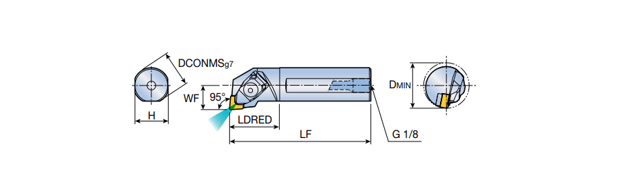 RHINOTURN T-Holder type boring bars for high pressure coolant with 93° approach angle and CN.G 0904 inserts
