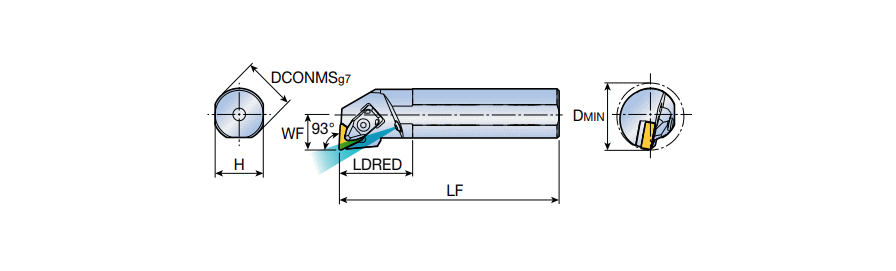 T-holder RHINOTURN boring bars with 93° approach angle & coolant for TN.. 1304 inserts