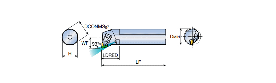 T-holder RHINOXTURN boring bars with internal coolant, 93° approach angle & 70° corner angle XNMG inserts