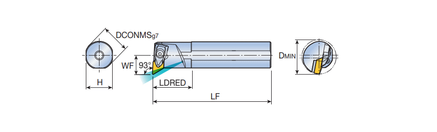 T-holder boring bars for 55° negative Rhombic inserts with coolant and 93° approach angle