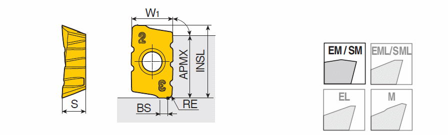 Application:, Chamfer & Serration, Facing, Helical Interpolation, Inserts, Rampdown, Shouldering, Slotting, Maximum Feed per Tooth (fz(max)): 0.17 mm/tooth