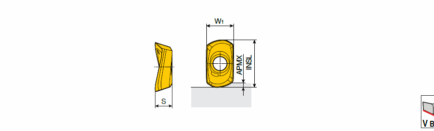 High productivity single-sided, two-corner inserts with V-shape bottom contact for high feed milling