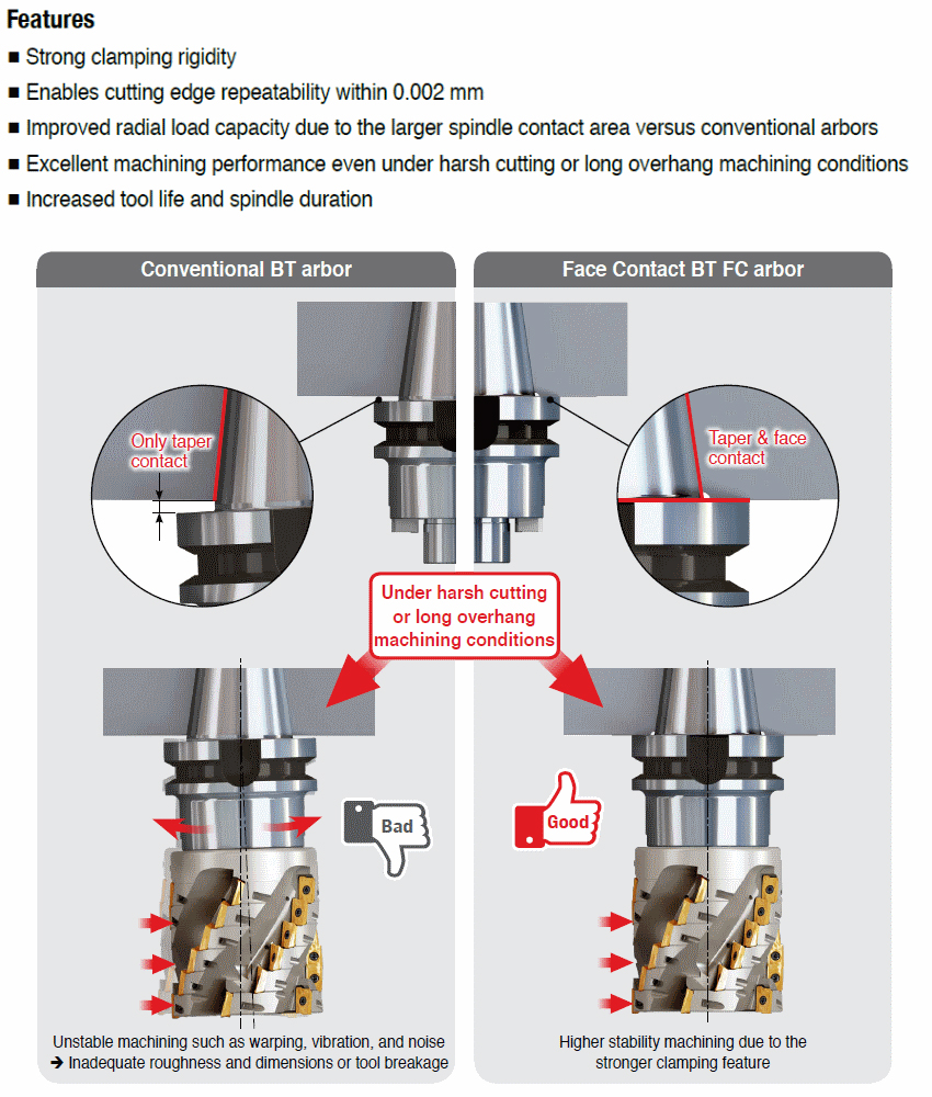 ISO 3937 Face mill arbors with coolant holes & BT MAS-403 form ADB taper shanks