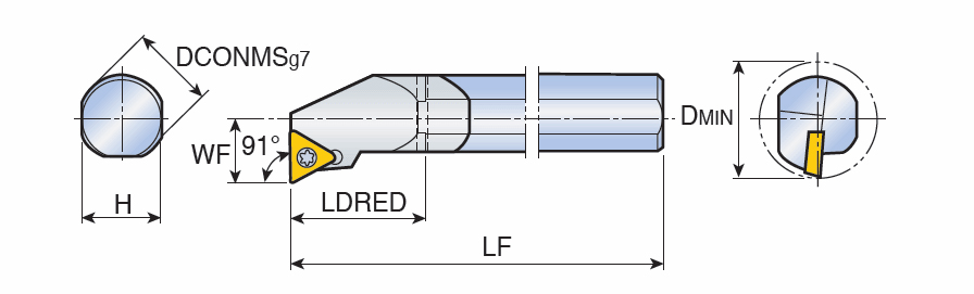 Screw type Carbide shank boring bars for positive Triangular inserts of 7° clearance angle with 91° approach angle