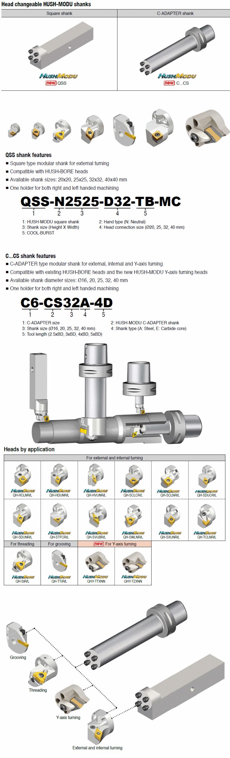 Head changeable C-ADAPTERs for internal and external machining