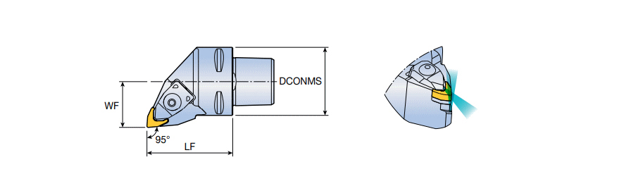 C-ADAPTER T-holders with 2-way high-pressure coolant for 95° approach angle & negative 80° trigon inserts