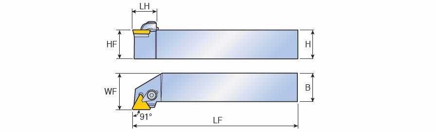 Top clamp holders with 91° approach angle for positive Triangular inserts of 11° clearance angle
