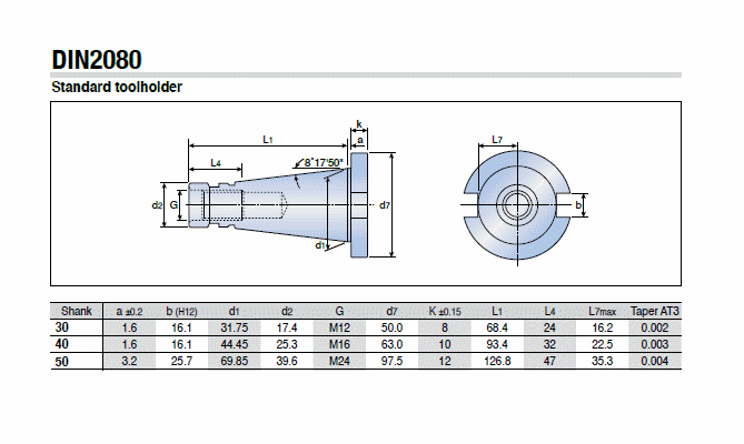 Home » Shop » CUTTING TOOLS » Carbide » TOOL HOLDING » Taegutec DIN2080 40 EM 12X50