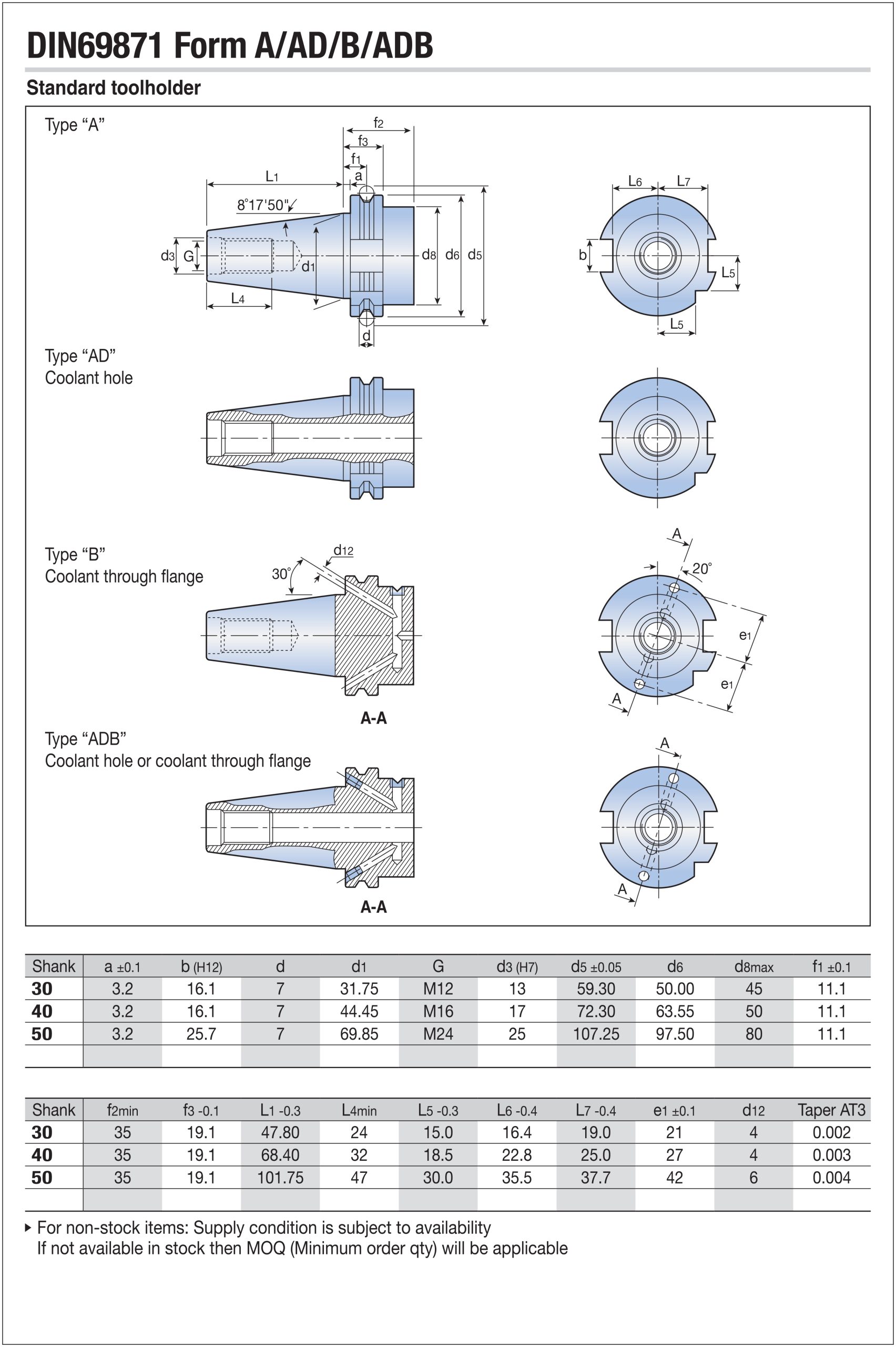 DIN6359 / DIN 1835 form B Weldon end mill holders with DIN 69871 form AD/B taper shanks