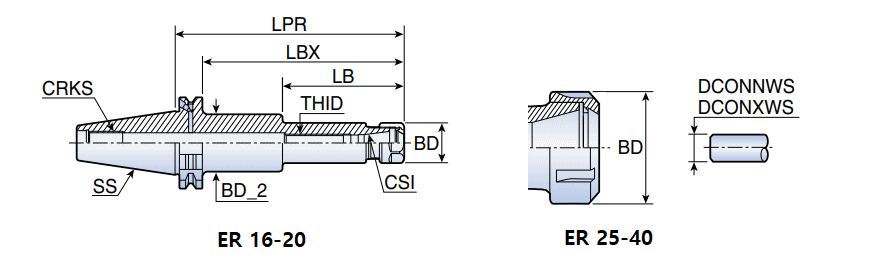 DIN 6499 ER collet chucks with DIN 69871 form ADB taper shanks