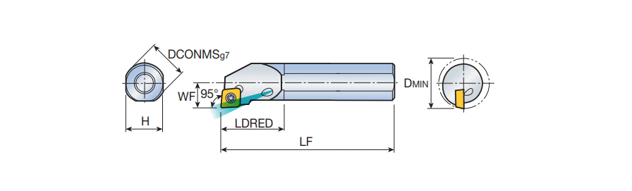 Carbide shank screw type boring bars with coolant for positive 80° Rhombic inserts of 7° clearance angle and 95° approach angle