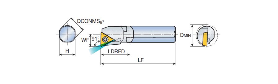 Screw type carbide shank boring bars for positive Triangular inserts of 11° clearance angle with 91° approach angle & coolant