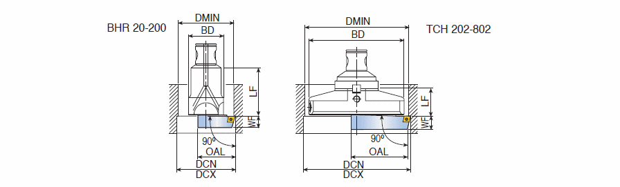 Rough boring tools used for twin cutter configuration, with their radial and axial edge position inner to the opposite – finishing tool on the MB modular boring system.