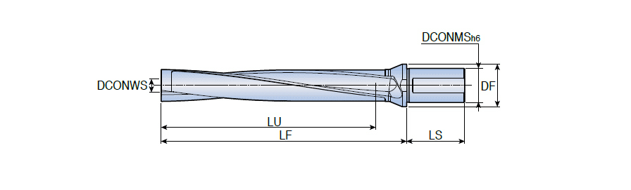 Modular drill holders of drilling depth in 7xD for modular drill heads of big diameter(Weldon type shank)