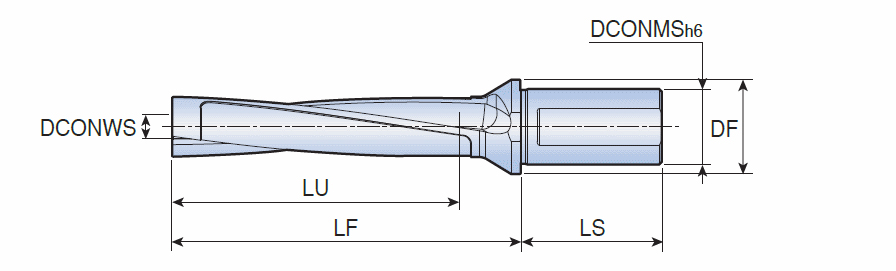 Modular drill holders of drilling depth in 5xD for modular drill heads of big diameter