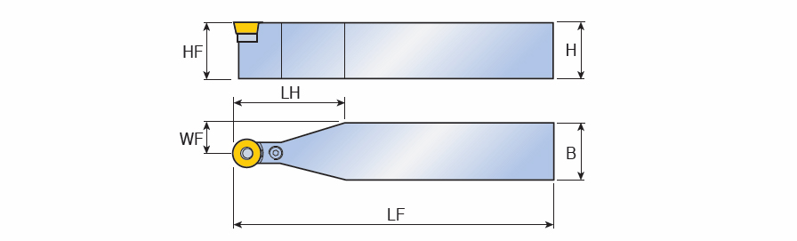 Lever type holders with 45° approach angle for positive Round inserts of 7° clearance angle