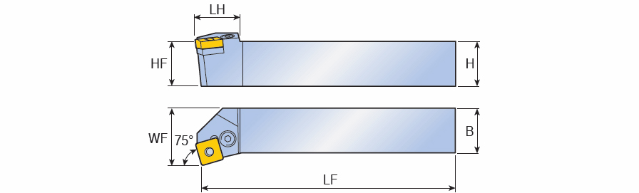 Lever type holders facing with 75° approach angle for negative Square inserts