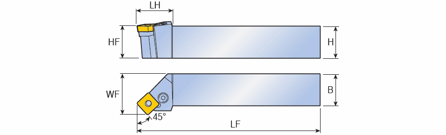 Lever type holders with 45° approach angle & negative Square inserts for longitudinal & face turning