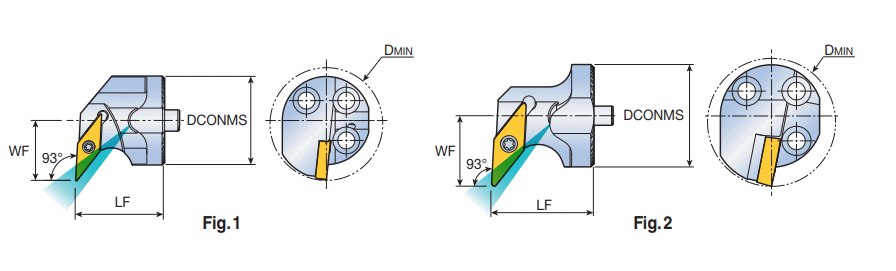 Exchangeable screw type boring heads with 35° VB.T positive inserts & 93° approach angle for anti-vibration deep boring machining