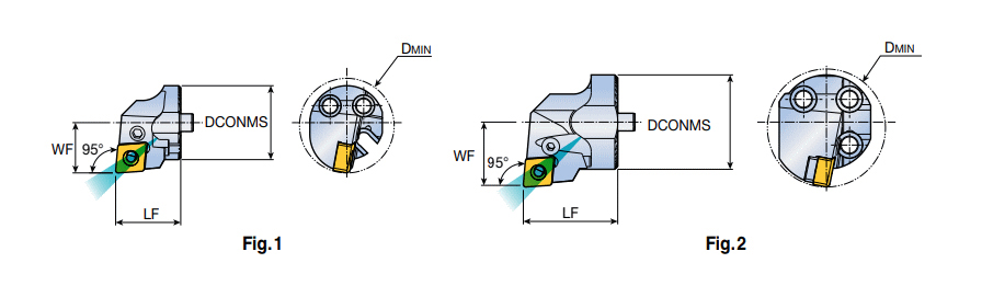 Exchangeable Hook lever RHINOTURN boring heads with 80° CN..0904..inserts & 95° approach angle for anti-vibration deep boring machining