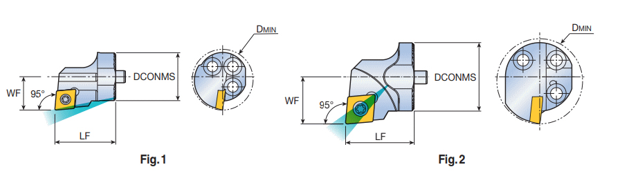 Exchangeable screw type boring heads with 80° CC.T positive inserts & 95° approach angle for anti-vibration deep boring machining