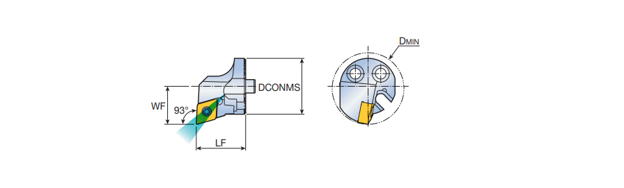 Exchangeable screw type RHINOXTURN boring heads with XNMG 70° inserts & 93° approach angle for anti-vibration deep boring machining