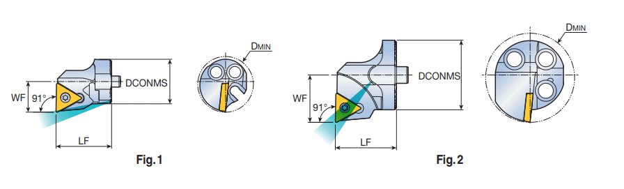 Exchangeable screw type boring heads with 60° TC..1102/16T3 triangular inserts & 91° approach angle for anti-vibration deep boring machining