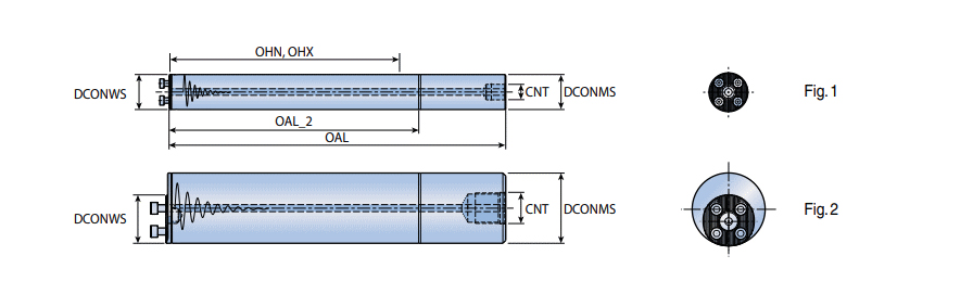 Anti-vibration damper round shanks with exchangeable heads & coolant hole for deep boring machining up to 14xBD