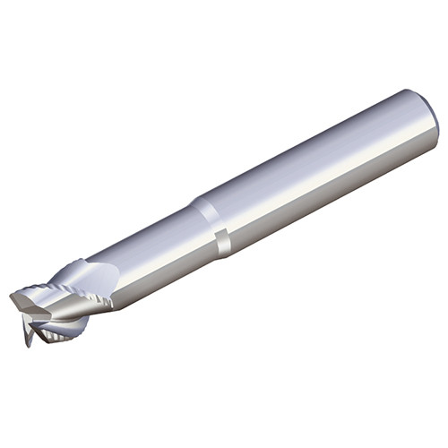 Solid carbide end mills with shredded cutting edges for aluminum roughing with 3 flute & small corner R