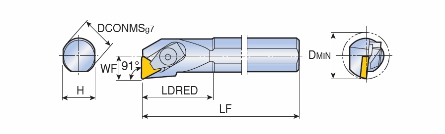 Top clamp boring bars for positive Triangular inserts of 7° clearance angle with 91° approach angle