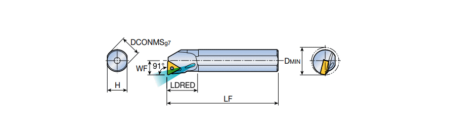 Screw type RHINOTURN boring bars for TN.. 1304 inserts with 91° approach angle