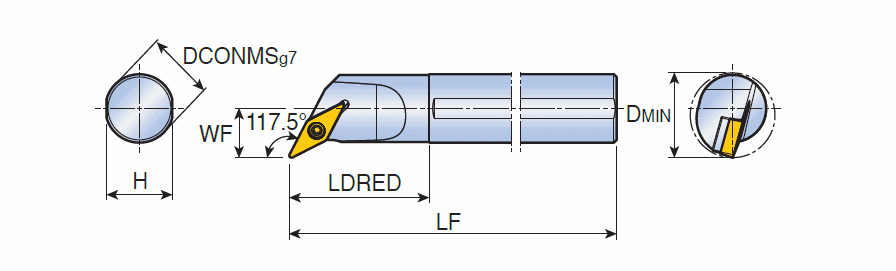 Screw type boring bars for positive 35° Rhombic inserts of 5° clearance angle with 117.5° approach angle