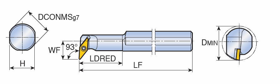 TOPMINI screw type boring bar for positive 35° Rhombic inserts of 7° clearance angle with 93° approach angle for small components machining