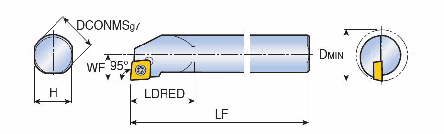 Screw type boring bars for positive 80° Rhombic inserts of 11° clearance angle with 95° approach angle