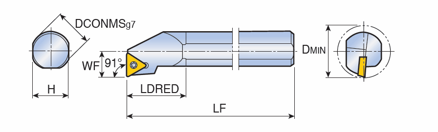 Screw type boring bars for positive Triangular inserts of 7° clearance angle with 91° approach angle