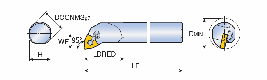 Multi lock boring bars with 95° approach angle for negative 80° Trigon inserts