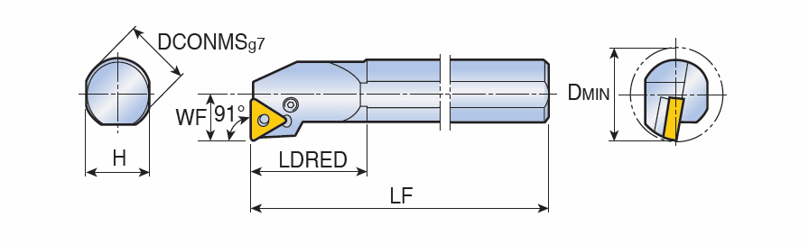 Lever type boring bars for negative Triangular inserts with 91° approach angle