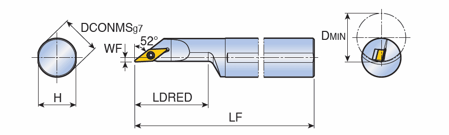 Screw type boring bars for positive 35° Rhombic inserts of 5° clearance angle with 142° approach angle