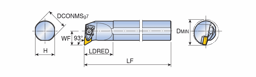 T-holder RHINOTURN boring bars for DN.. 1305 inserts with 93° approach angle