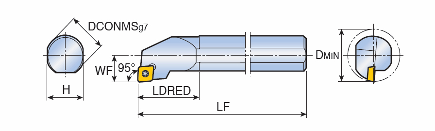 Screw type boring bars for positive 80° Rhombic inserts of 7° clearance angle with 95° approach angle