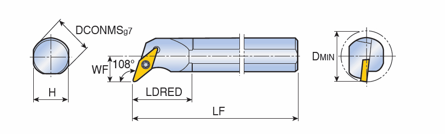 Screw type boring bars for positive 35° Rhombic inserts of 5° clearance angle with 108° approach angle