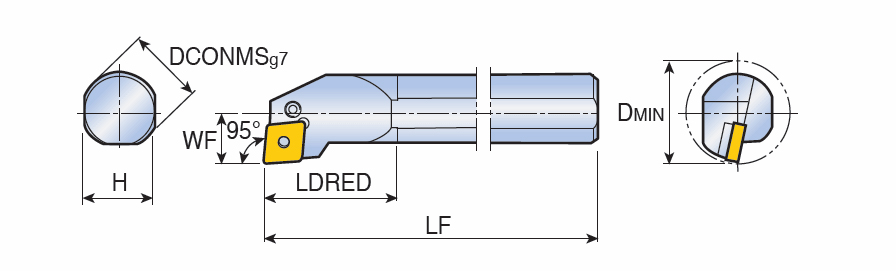 Lever type boring bars with 95° approach angle for negative 80° Rhombic inserts