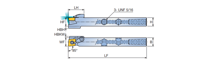 Screw type high pressure coolant holders with 95° approach angle & 80° CC.T positive inserts for Swiss type automatic lathes